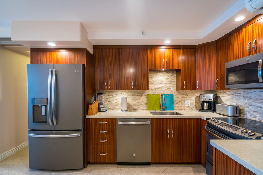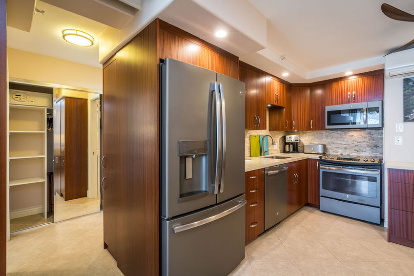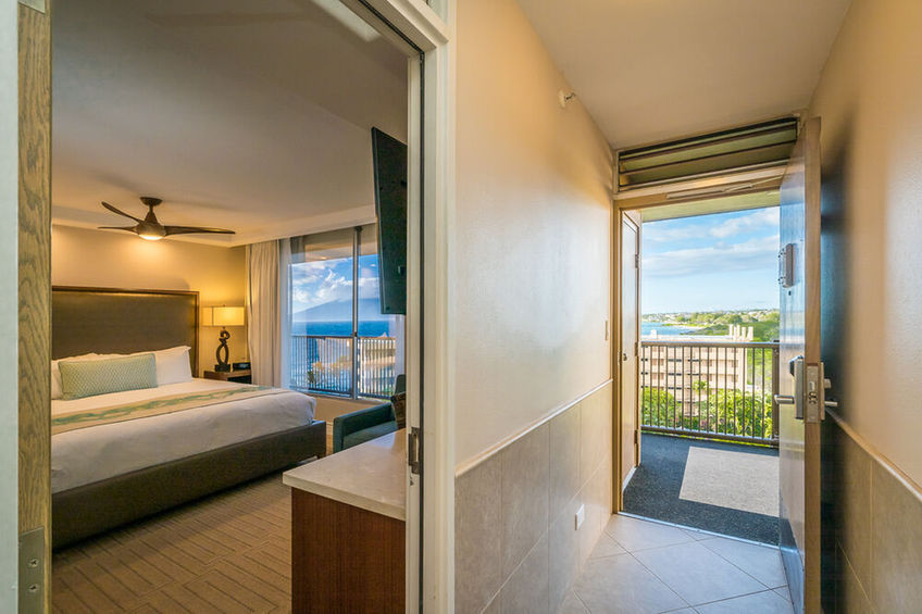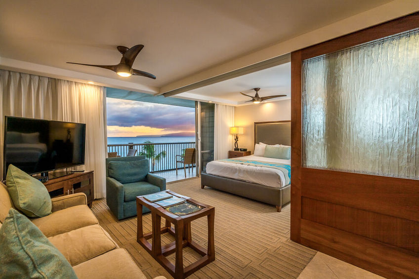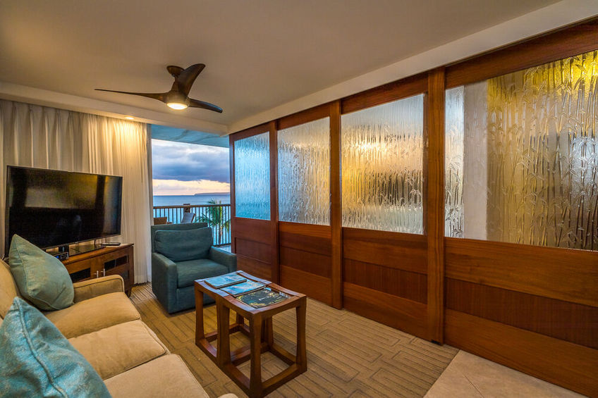 The open plan condo was designed to take advantage of ocean breezes and spectacular views. The king-sized bed is right next to the sliding glass doors that open directly onto the lanai. Taking just a few steps from bed out into the fresh air will allow you to see the peaks of Maui’s own Haleakalā National Park as well as the islands of Molokini, Kaho‘olawe, and the shoreline down from Wailea to Makena.